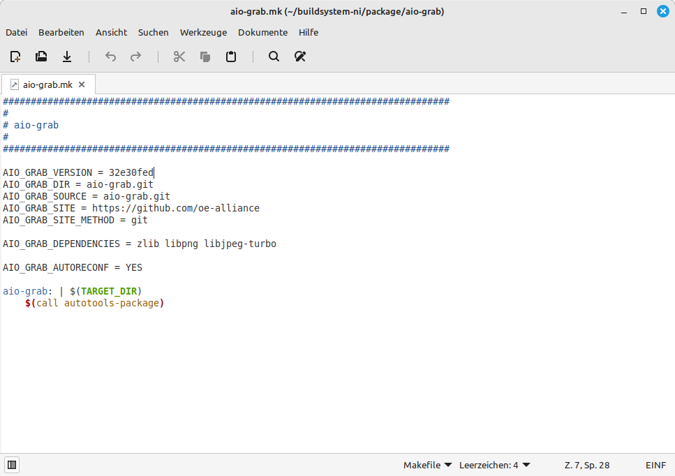 tausche master gegen 32e30fed aus in dem Makefile, abspeichern....
