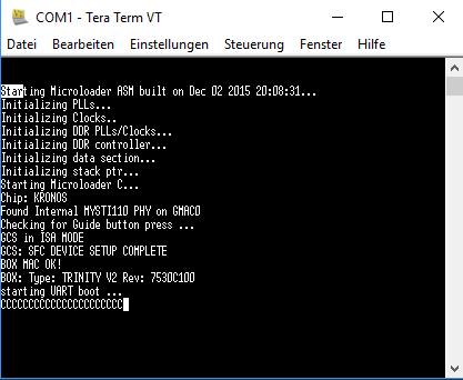 lipps1 hat geschrieben: ↑Mo 7. Aug 2017, 21:13Ich bin mit nullmodem Kabel auf der Box. Der Schwarze Bildschirm vom Putty ist der ganze Bootlog mehr kommt da nicht beim einschalten der Box. Ich habe probiert den Text mit der Maus zu kopieren und einzufügen aber ohne erfolg es lässt sich makieren aber nicht Kopieren und so schneide ich den Bildschirm immer aus speicher ihn und hänge Ihn als Datei an. Für Ratschläge immer Offen. Beim TeraTern habe ich den log gespeichert wollt Ihn anhängen aber ohne erfolg. Kann es aber jederzeit wiederholen.