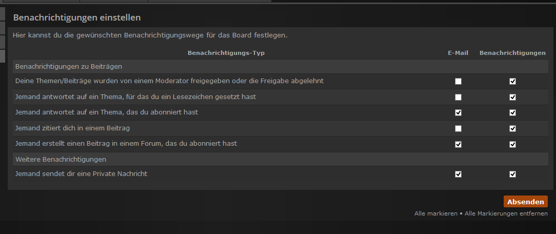 Hier kannst du die gewünschten Benachrichtigungswege für das Board festlegen.