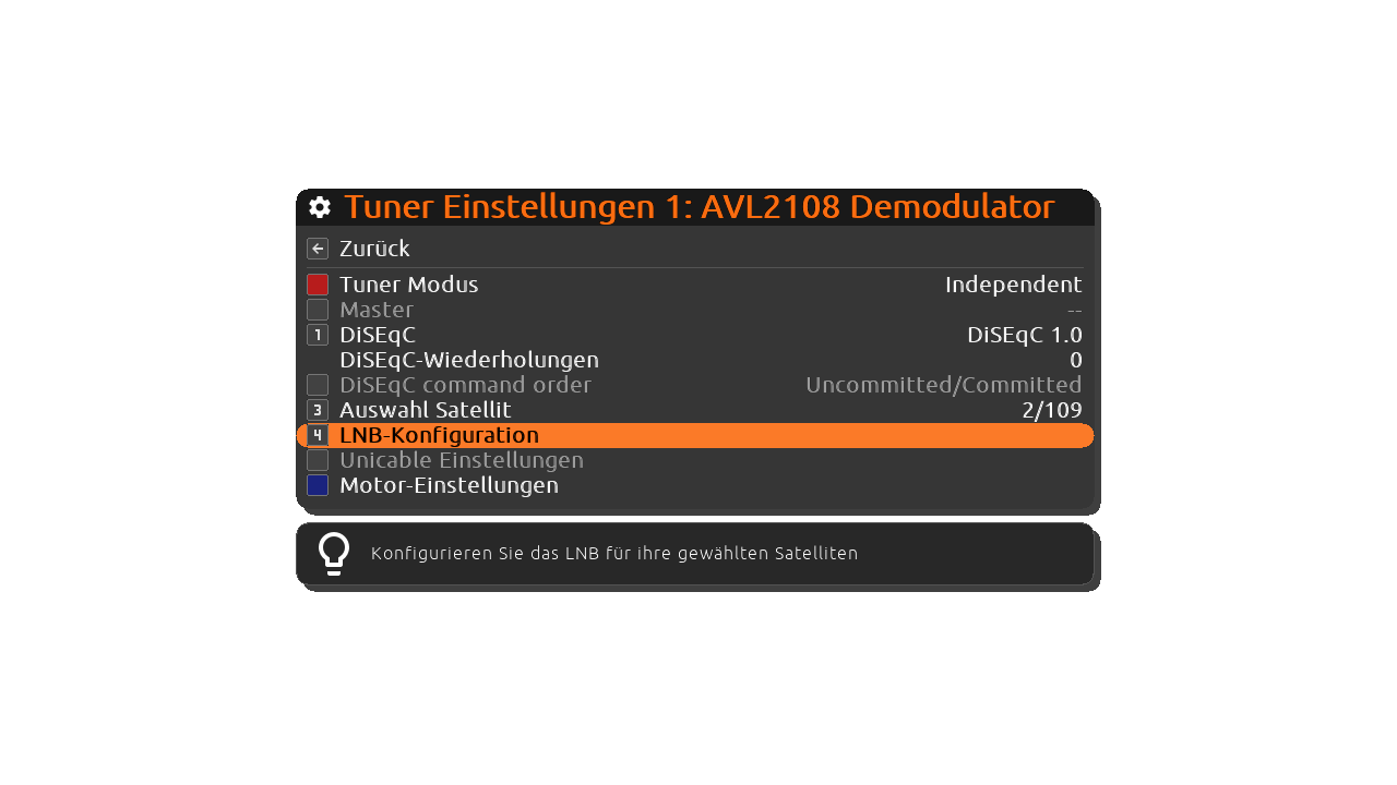 Die DiSEqC-Wiederholung von 0 auf 2 stellen!