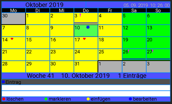Wenn ich jetzt im Oktober einen neuen Termin über die Fernbedienung eingebe, werden die Geburtstage im September in der zuxcal.list mit Nullen gefüllt und ein neuer Termin am Ende der Liste erstellt.