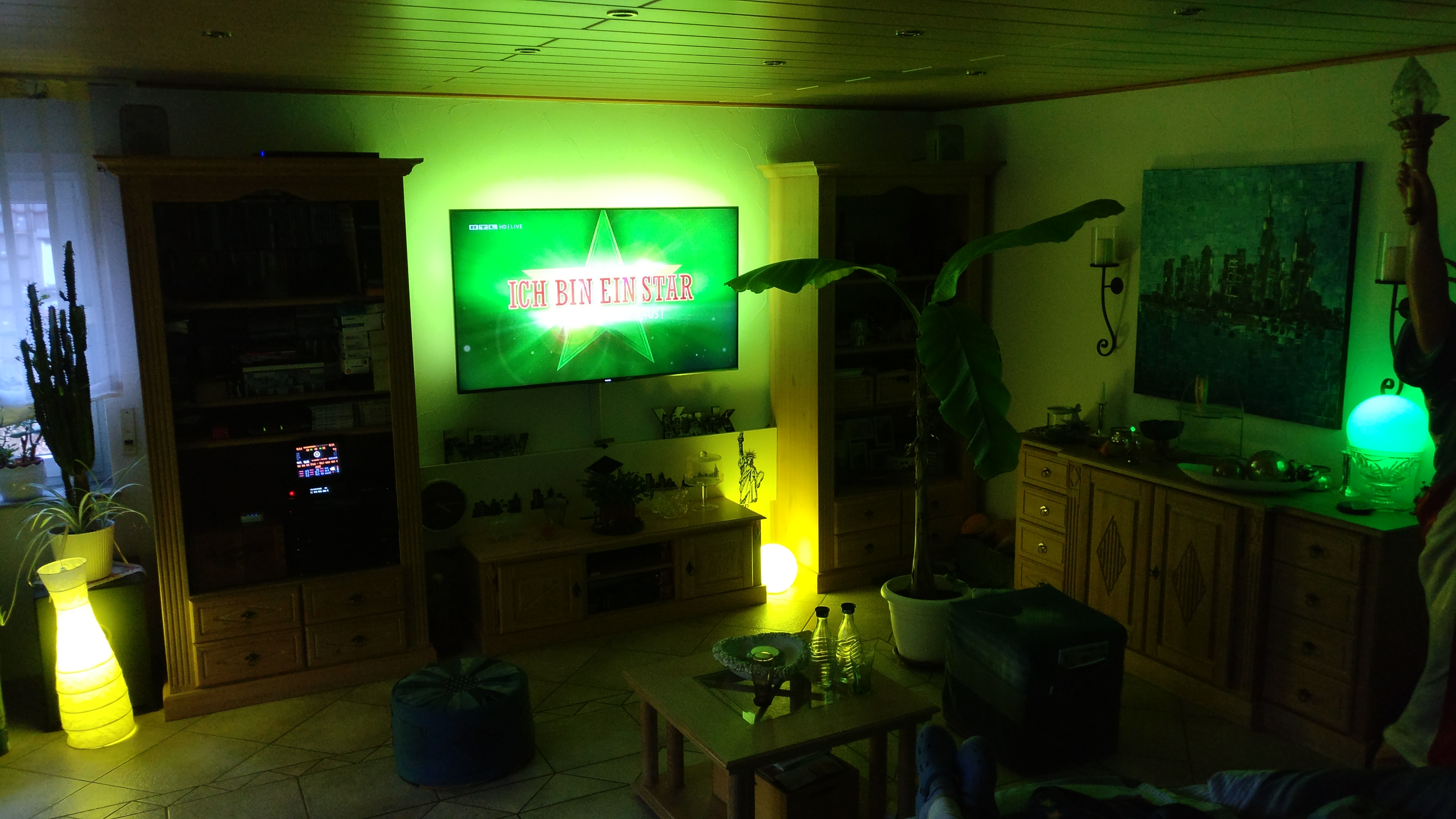 (die Philips Lampen werden aber nicht über das ambilight vom TV gesteuert, sondern über das EPG vom Receiver: wenn Dschungel läuft, dann grün, wenn the Voice läuft, dann rot. Usw.