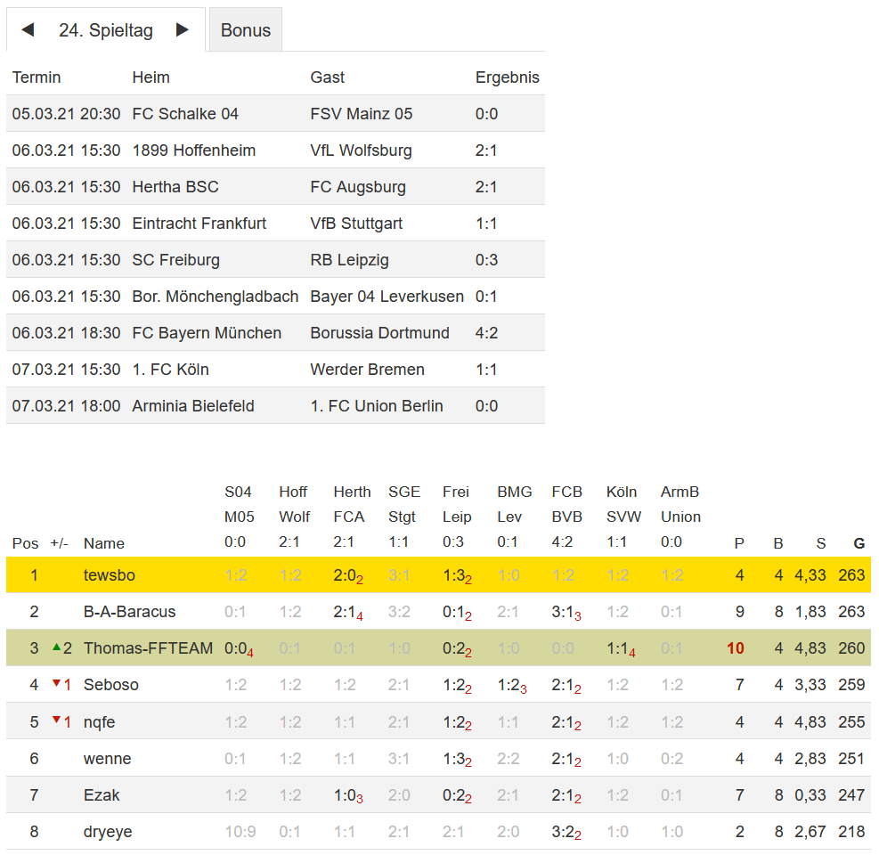 Stand 24. Spieltag - NI-Tippspiel zur Fussball-Bundesligasaison 2020/21