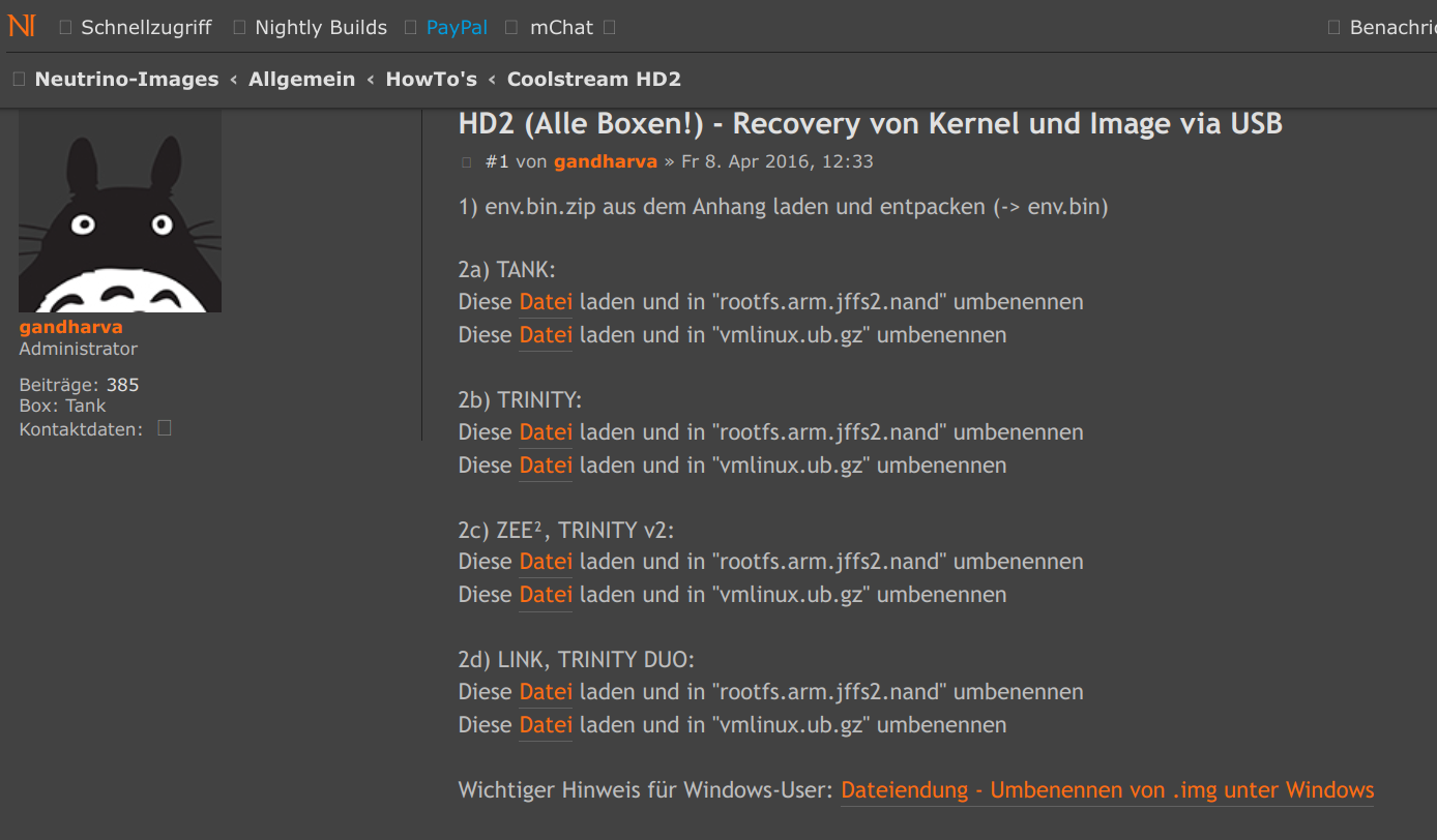 Auf dem Stick muss natürlich auch ein Ordner namens coolstream drauf, da kommt dann kernel.img und system.img drauf. (oder ist das bei der Trinity nicht mehr so?)