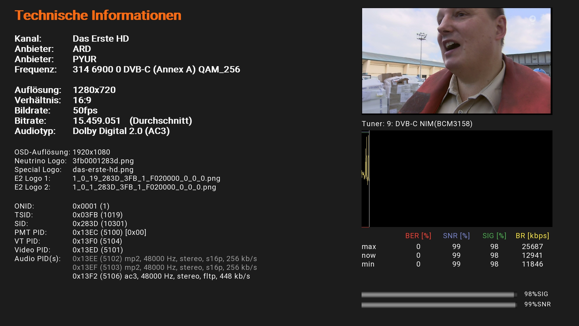 Das erste sendet auch MP2 mit 256kbit/s. Die anderen ÖR mit 192kbit/s und mehr (bei den ZDF Sendern gibts aber zumindest eine Tonspur die dann "nur" mit 192kbit/s sendet.