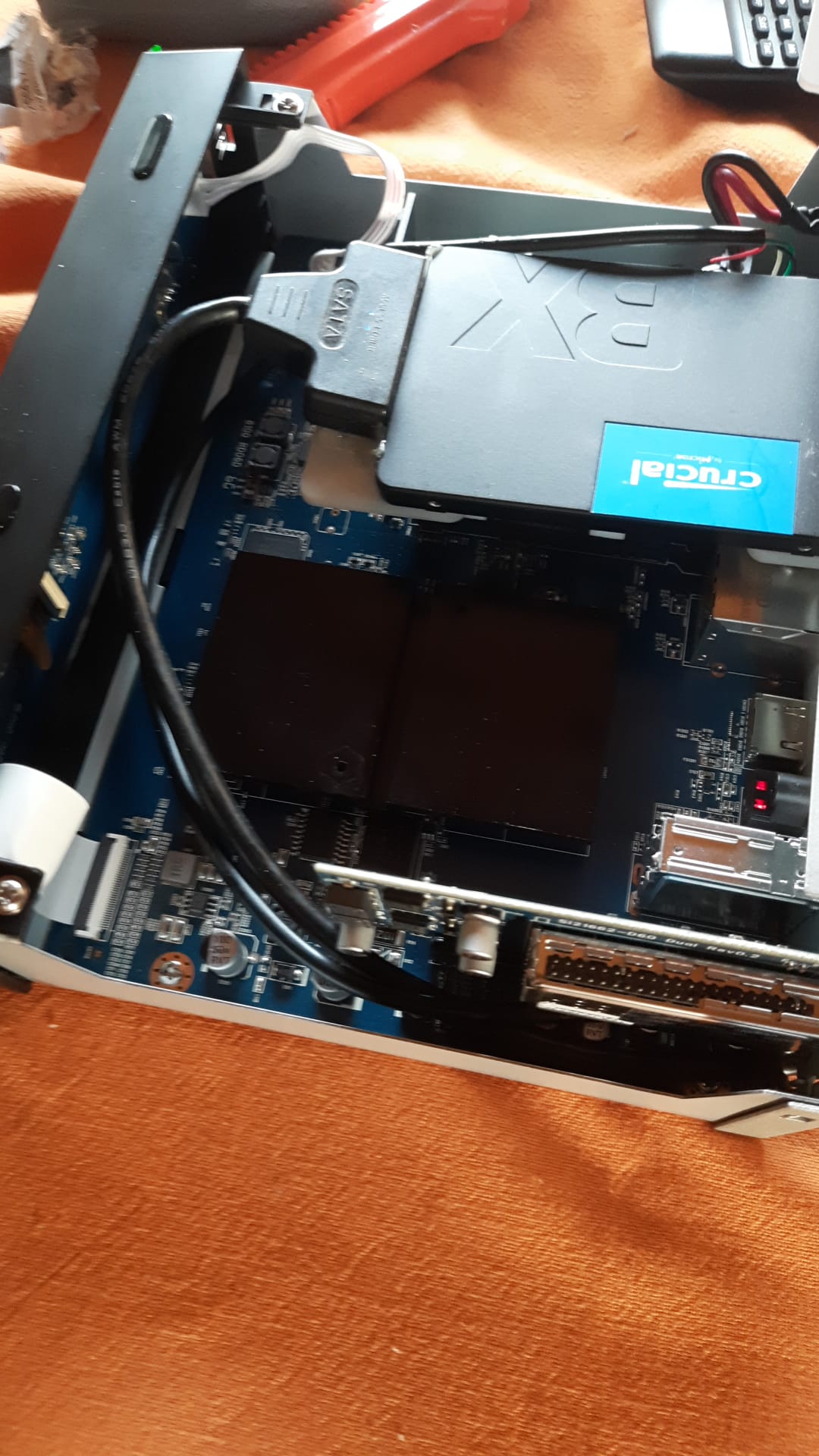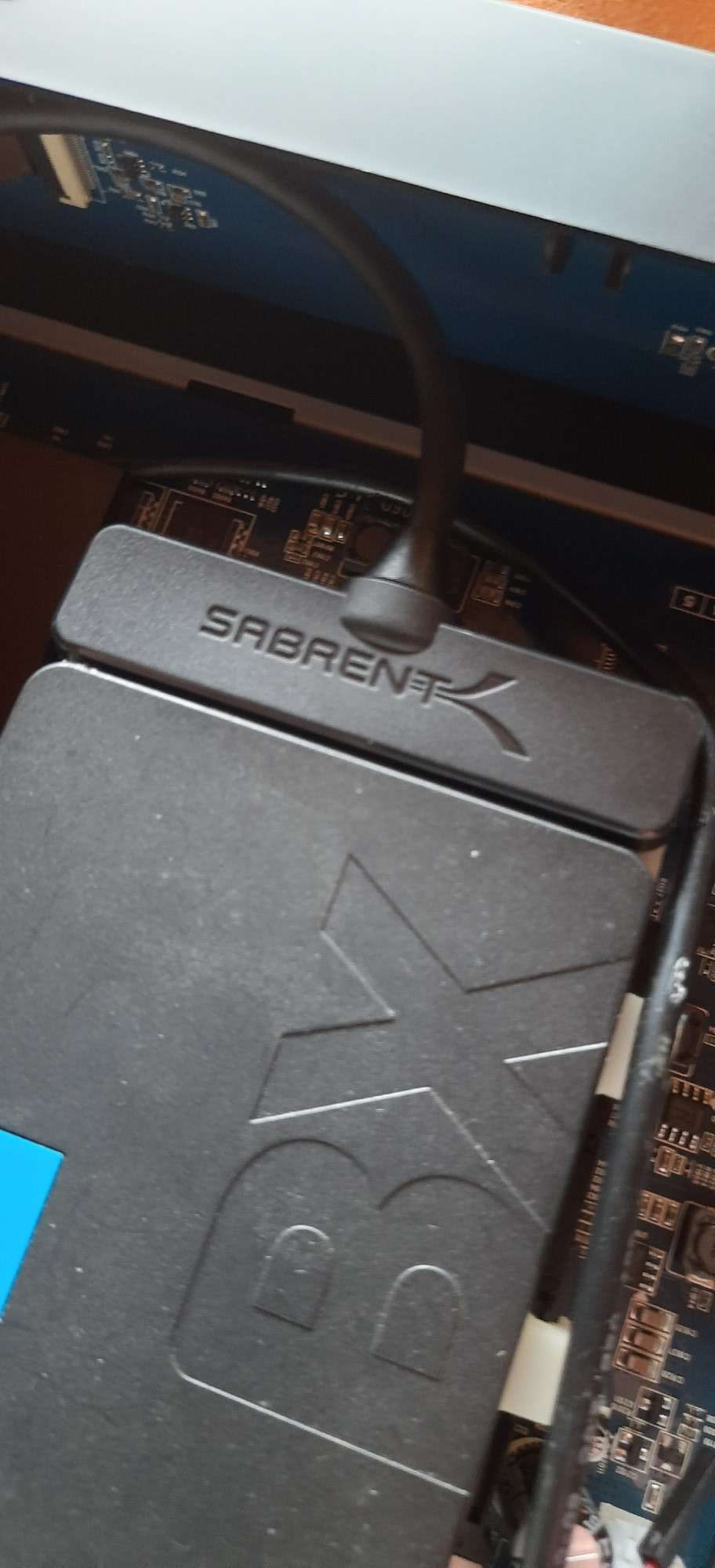 HDD eben mit Halterung eingebaut und usb-to-serial Kabel,