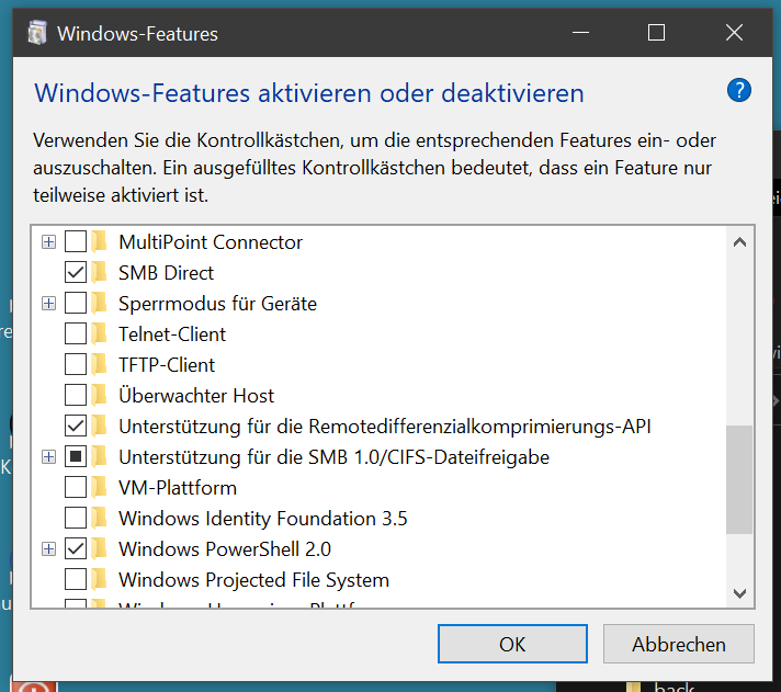 es musste noch in Windows die Unterstützung für die SMB 1.0 / CIFS-Dateifreigabe installiert werden.