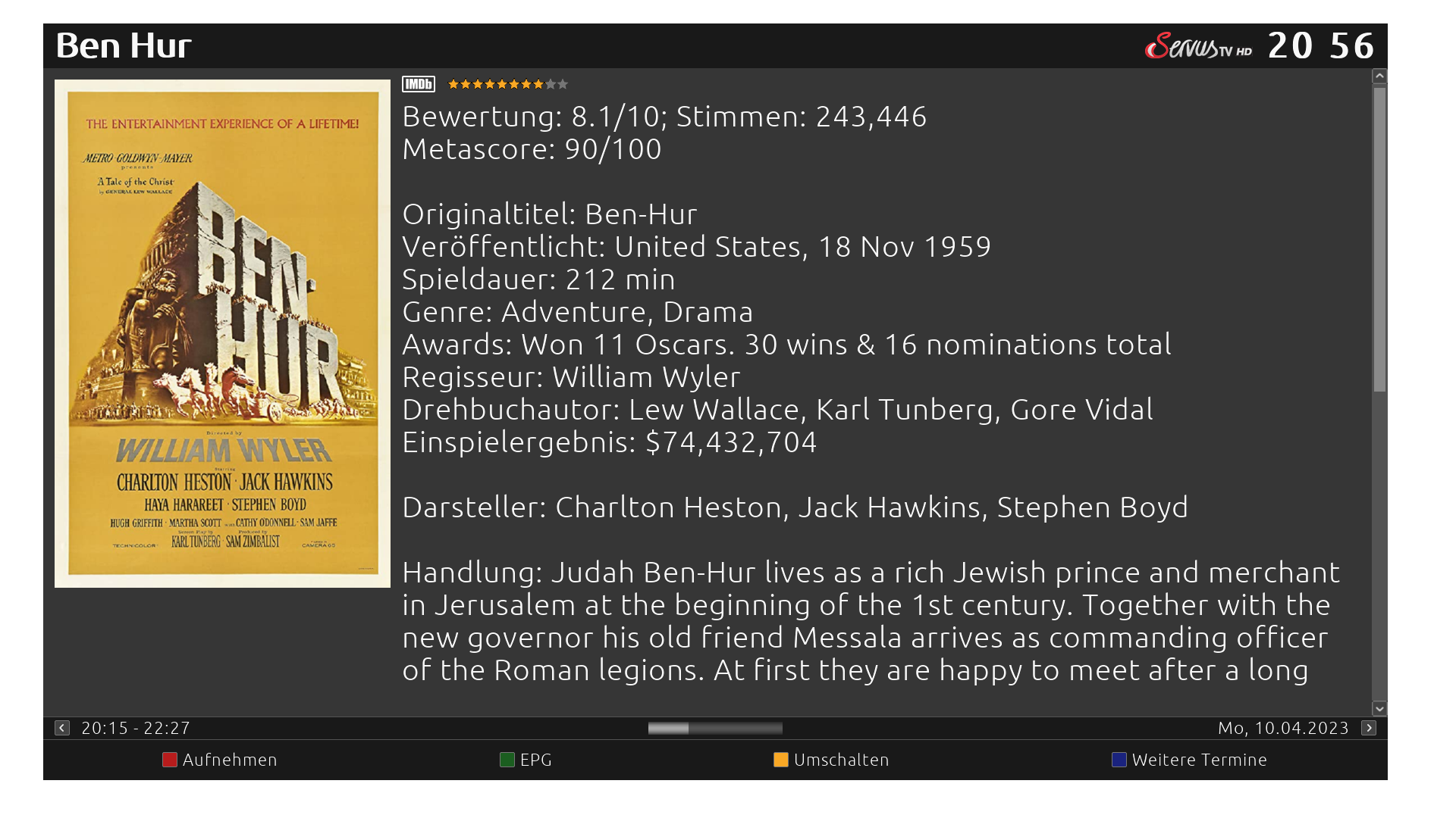 zum einen hat ich auch gewundert diese ombd-Zeilen zu sehen, obwohl ich IMDB abgerufen habe. Zum anderen funzt OMDB auch auf der E4HD korrekt.