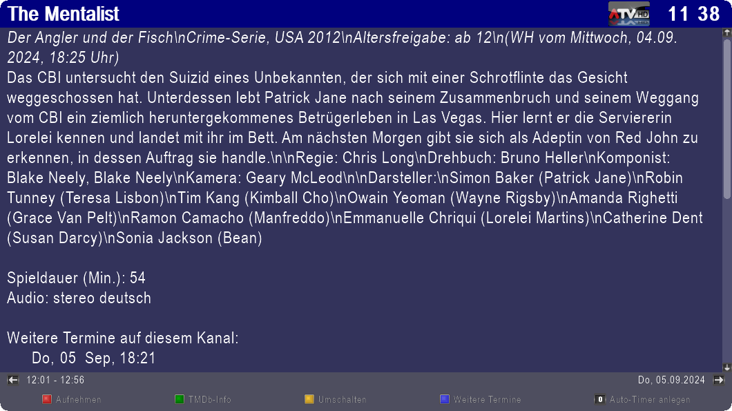 bei den beiden, o. g., Sendern ATV HD (1 und 2) kann man die Info im EPG nur schlecht lesen, da hier die Zeilenumbrüche nicht erkannt werden.