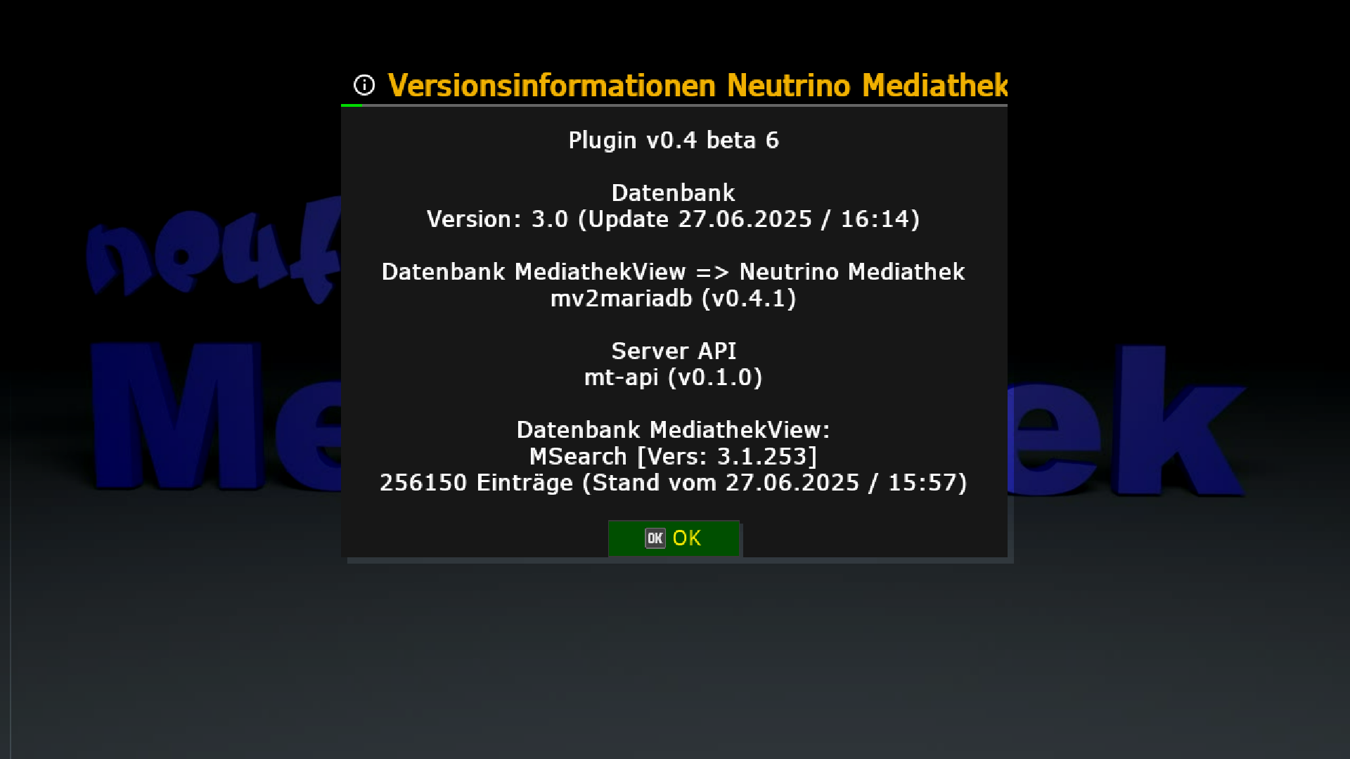 sucht / eingibt .. das ergebnis ist das gleiche .. und da ich vermute das die neutrino mediathek das nutzt