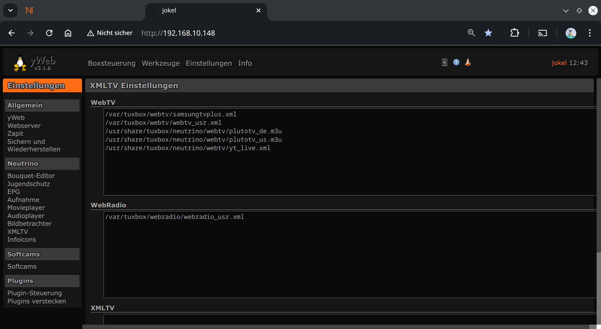 Danach kannst Du mit die Senderliste aktualisieren. Dann überprüfe ob Du Web-TV Sender hast. Ich habe dann keinen einzigen