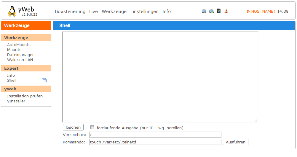 Die Box schaltet dann auf root1