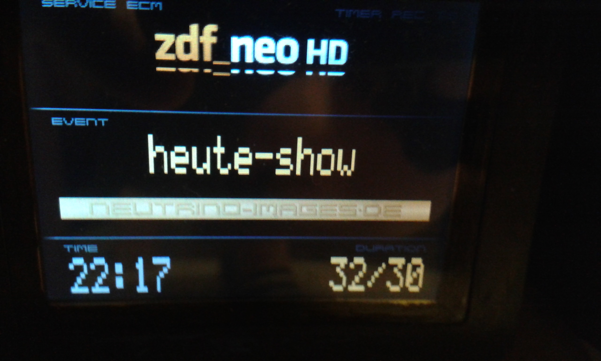 Ich bekomme das hier leider nicht nachgestellt.JFA hat geschrieben:Die Bilder zeigen die fehlerhafte Anzeige, welche auch beim Standby erscheint.