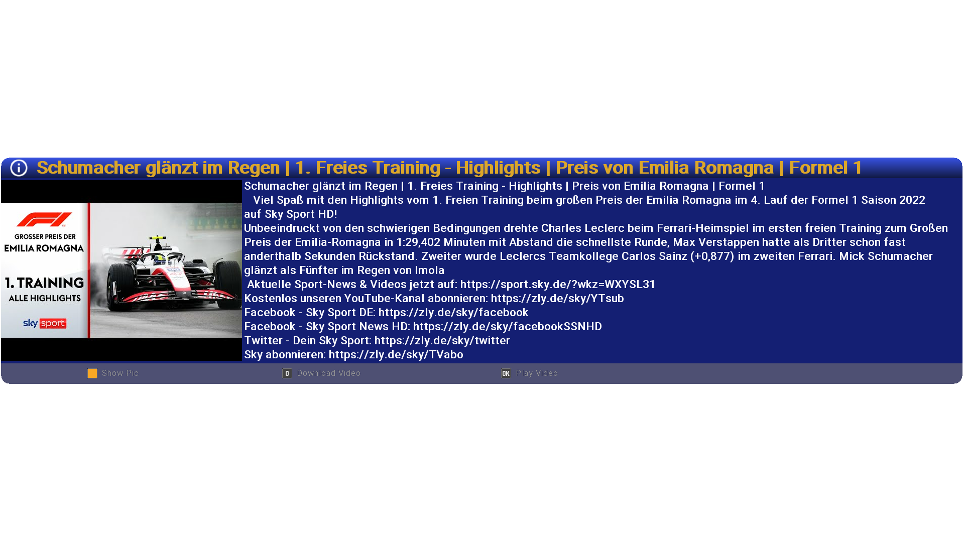 Gorcon hat geschrieben: So 24. Apr 2022, 16:27 Die Auflösung kann ich für die RSS youtube Videos wo ändern? (bei WebTV geht das ja mit der gelben Taste, aber bei youtube habe ich dort keine Optionen.