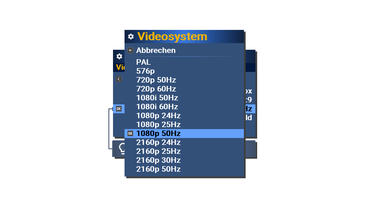 Achja, was das Ausblenden von Auflösungen betrifft: Das funktioniert (in meinemImage) nur über die Einstellungen->Video und dort "Videosysteme auf der VF-Taste". Das ist aber eine extra Taste auf der