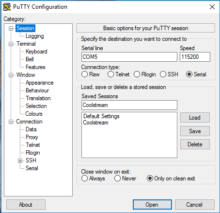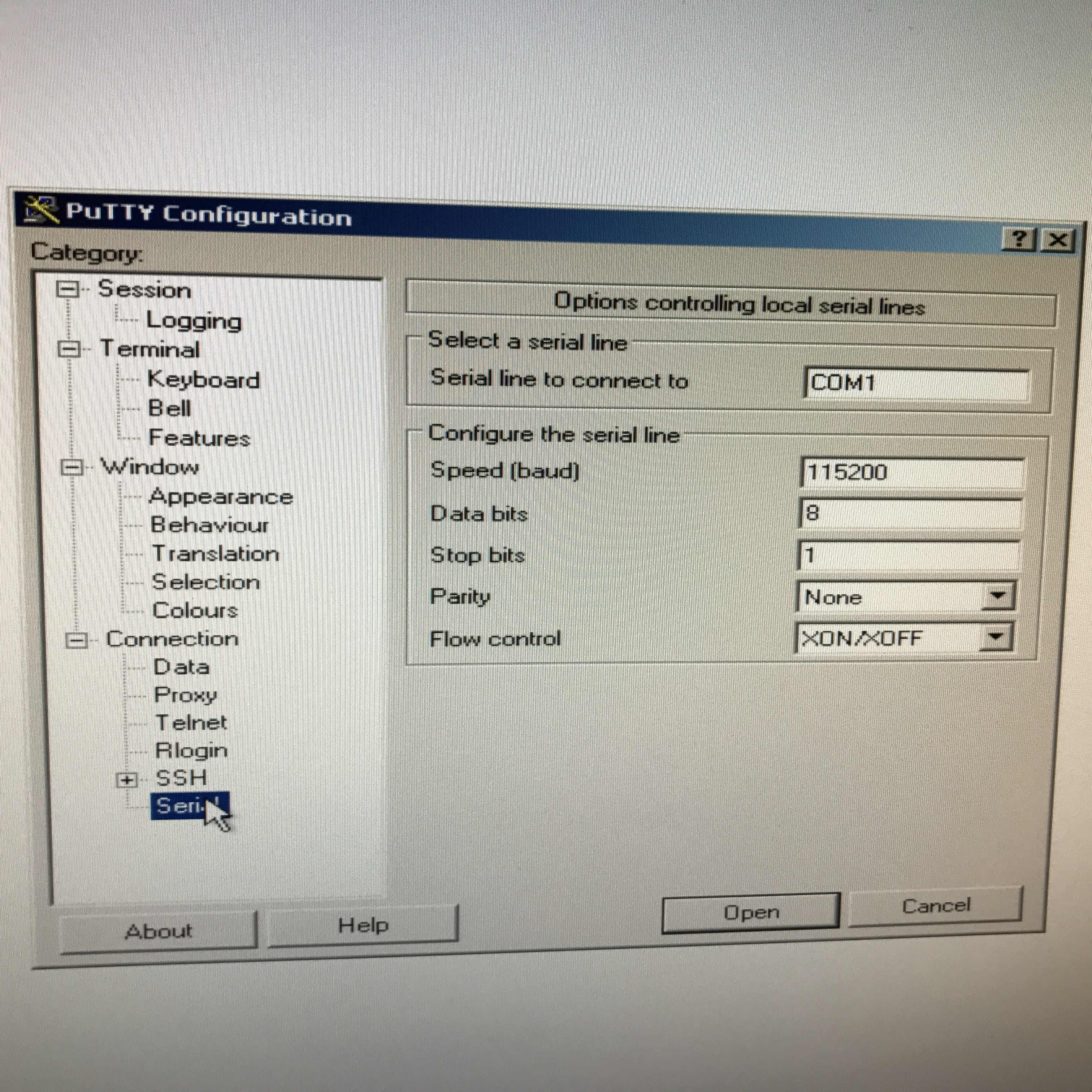 Ja. Jetzt ist es COM 1, da ich den alten fetten Rechner aus dem Keller geholt habe, das hat nämlich einen Seriellen Port. Da ich den Verdacht hatte dass der USB-Seriell Adapter nicht OK ist. Im grad denn rechner ist es COM 1. das sieht man auch daran dass ich endlich etwas Leben in Putty gekriegt habe. Wenn auch nur das oben beschriebene.