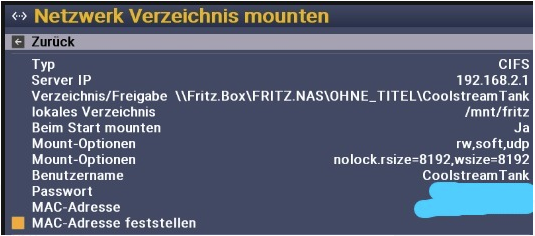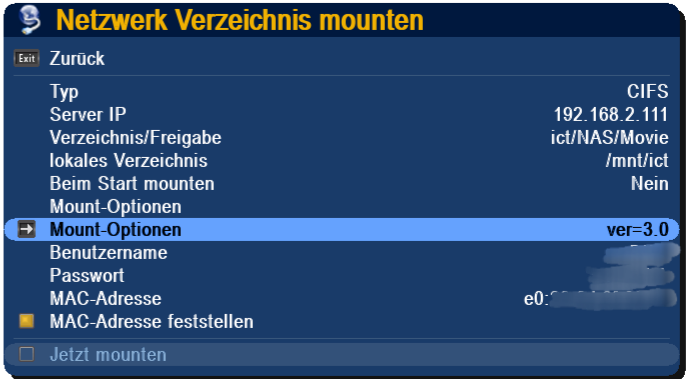 mount -t cifs -o rw,user=FB_NAS_UserName,password=FB_NAS_Pass,vers=3.0 //FB_IP/NAS_Pfad/scan /mnt/settings
