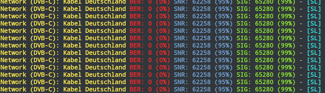 Network (DVB-C): unknown BER: 0 (0%) SNR: 59636 (91%) SIG: 65280 (99%) - [SL]