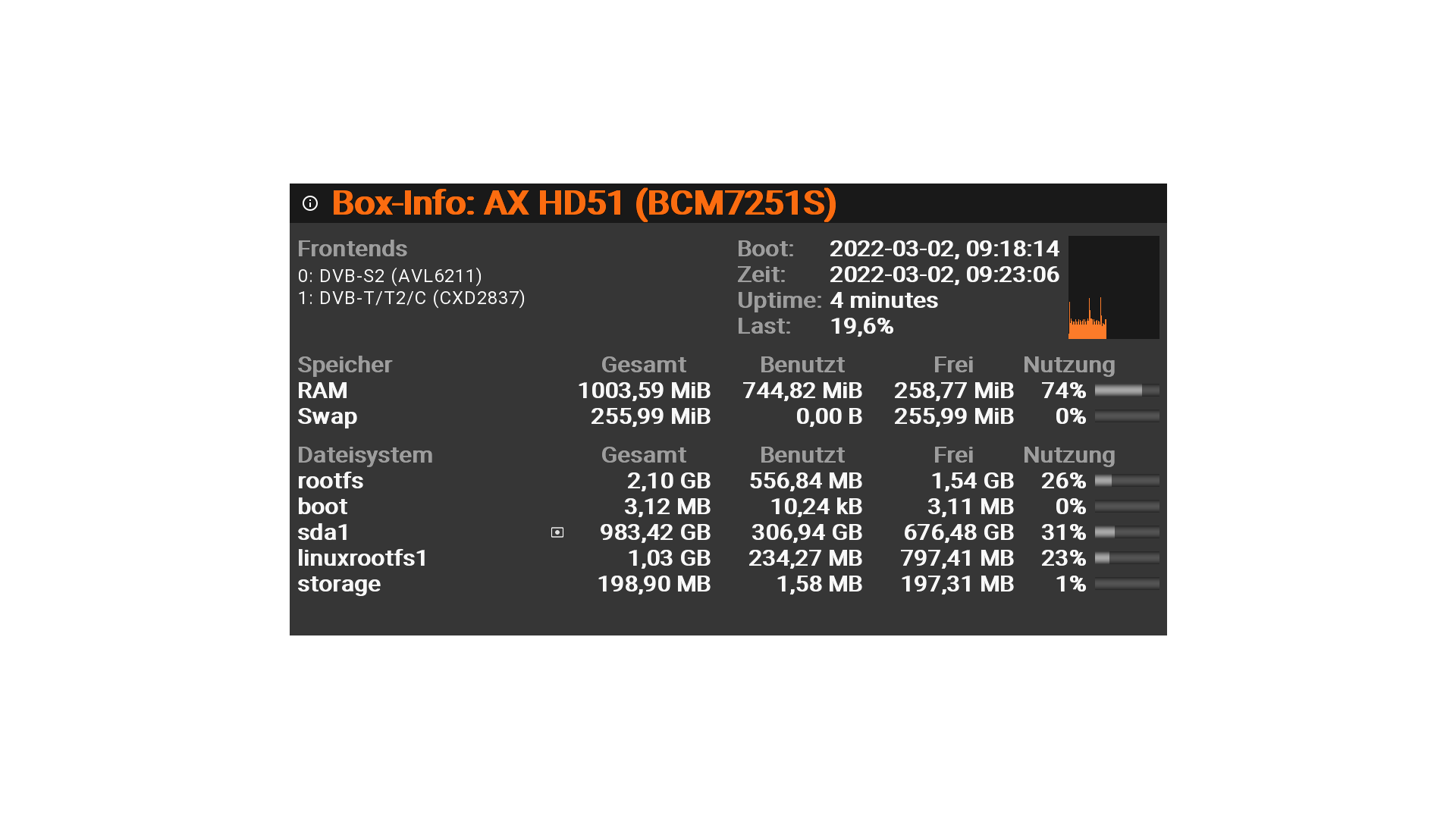 2 * AX HD 51 2 x DVB S2 / S2x 1 * Axas E4HD 3 x DVB S2x