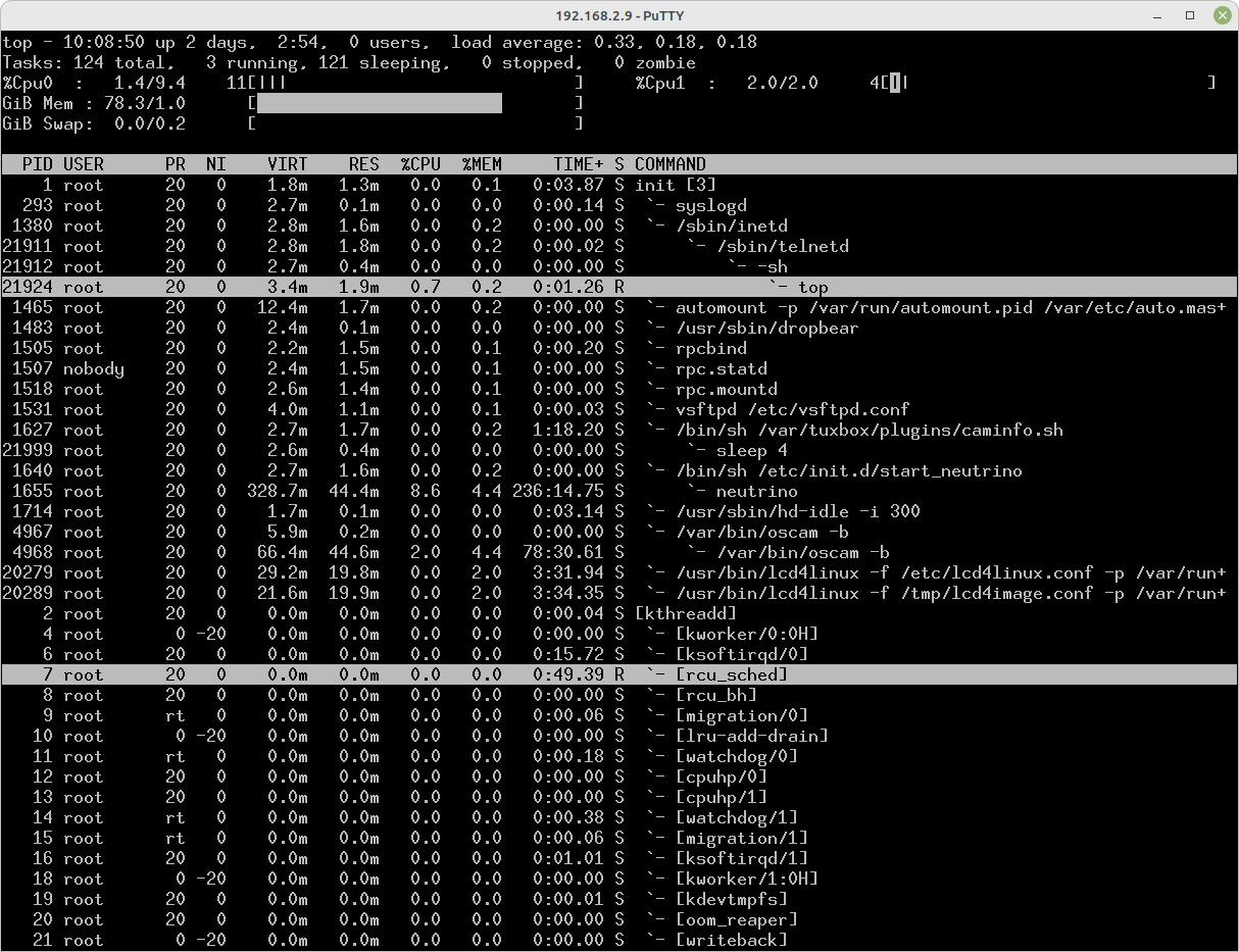Habe jetzt das heutige Nightly benutzt und ebenfalls im telnet mit " top " genutzt ...