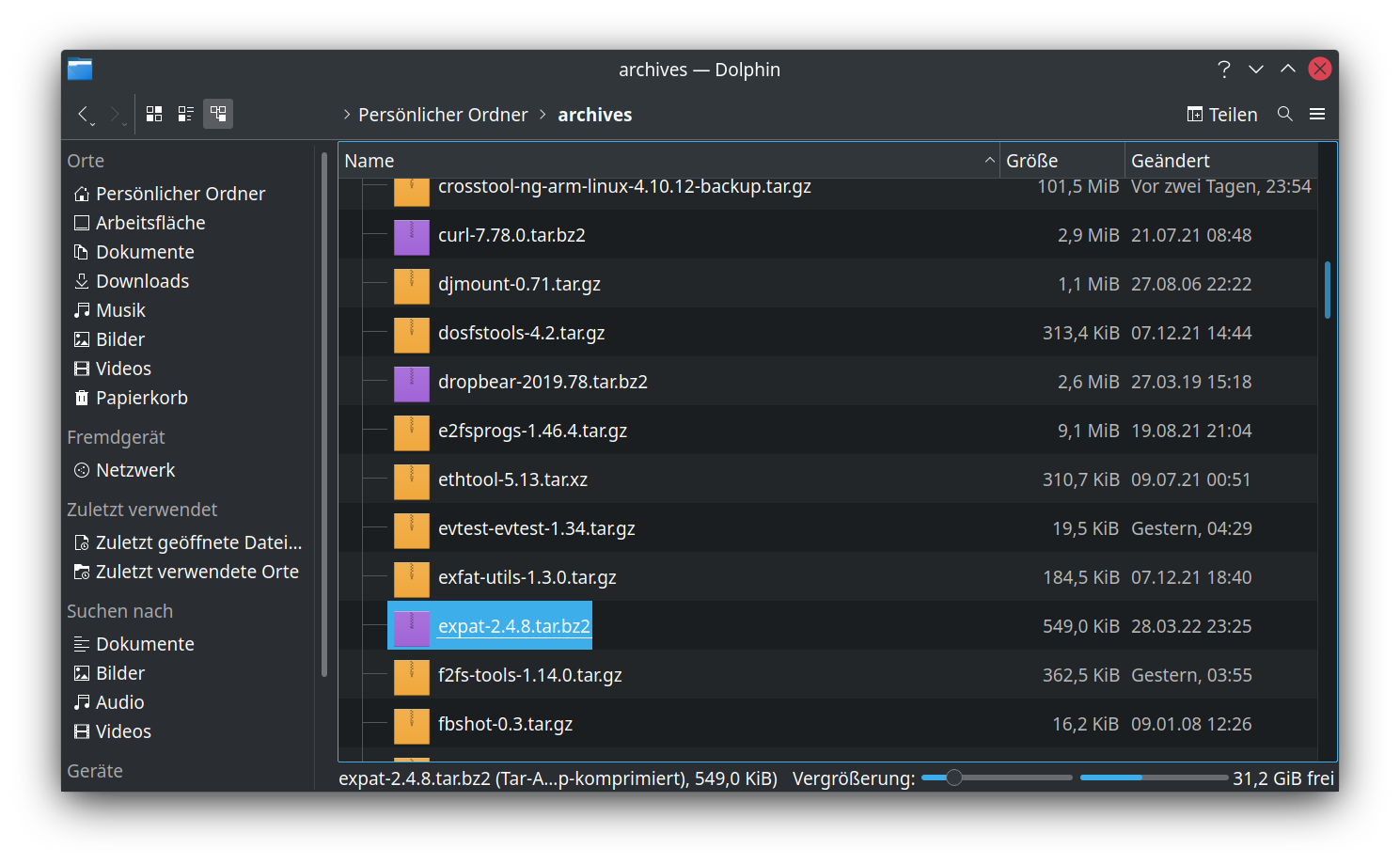 Hatte zwar auch das probiert cd archives dann make Update aber war nicht richtig und vieles anders super also doch einfach also geht das mit den ganzen Archiv auch ja oder oder immer nur 1 Datei ! So denke das war es echt so passt ja alles kann jedes bauen nur da hing ich bei den Updates ! Danke jokel !