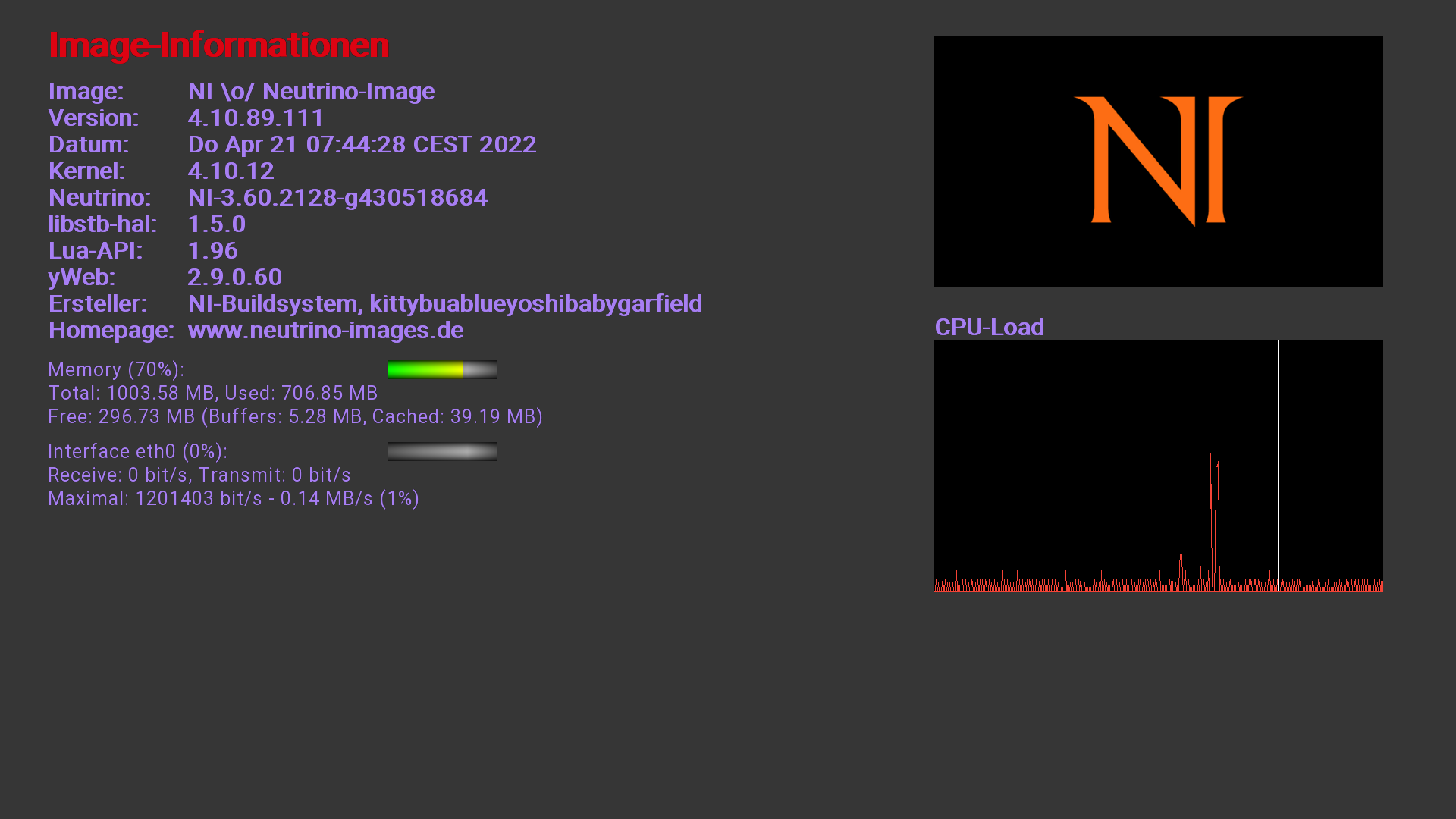 P.s. nicht wundern bei der version nach Update schaut auf Lua API bzw Neutrino nicht Version es passt weil habe eine neue gebaut vorgestern da ist die Version größer als die alte aber Lua api etc älter so Beispiel nach Update bin: