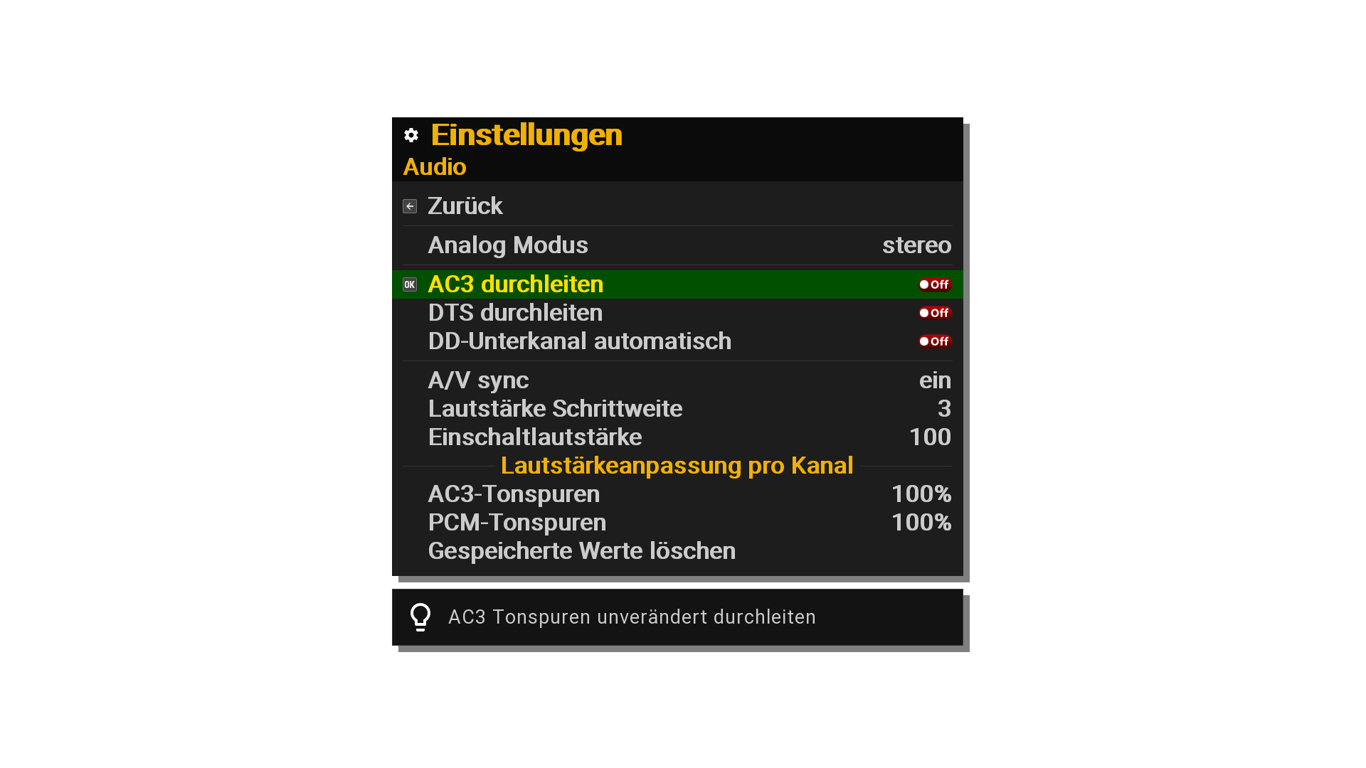 Die müssen ja an sein, ich will ja AC3 bei Aufnahmen nutzen können.