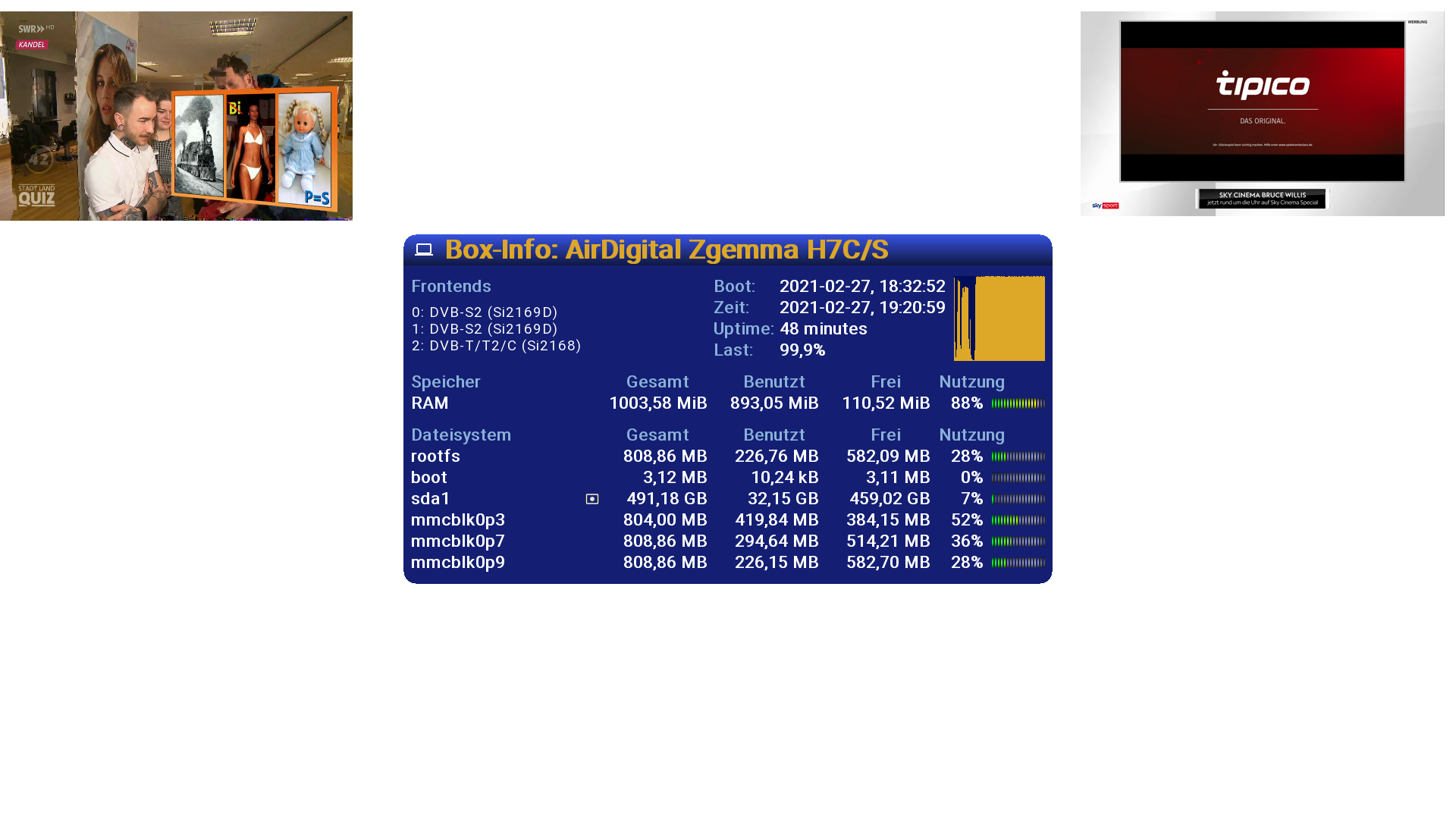 Ich habe gestern meine Zgemma H7C bekommen, und FFPip läuft soweit, wobei das PIP-Bild mit einer Zeitverzögerung und etwas ruckelig dargestellt wird. Eine Sache fiel mir aber auf: Wenn ich einen HD Sender ins PIP nehme, wird er korrekt in 16:9 angezeigt. Nehme ich dagegen einen SD Sender, welcher in 16:9 sendet, ins PIP, wird er als 4:3 angezeigt. Natürlich weiß ich nicht wie einfach oder aufwendig es wäre, vorab das AR zu prüfen und den FFMpeg Aufruf zum Skalieren entsprechend anzupassen. Ansonsten ist FFPip erstnaml eine gute Zwischenlösung, bis ( hoffentlich ) das normale PIP dann auch unter Neutrino su gut läuft wie z.B. unter OpenHDF und OpenATV.