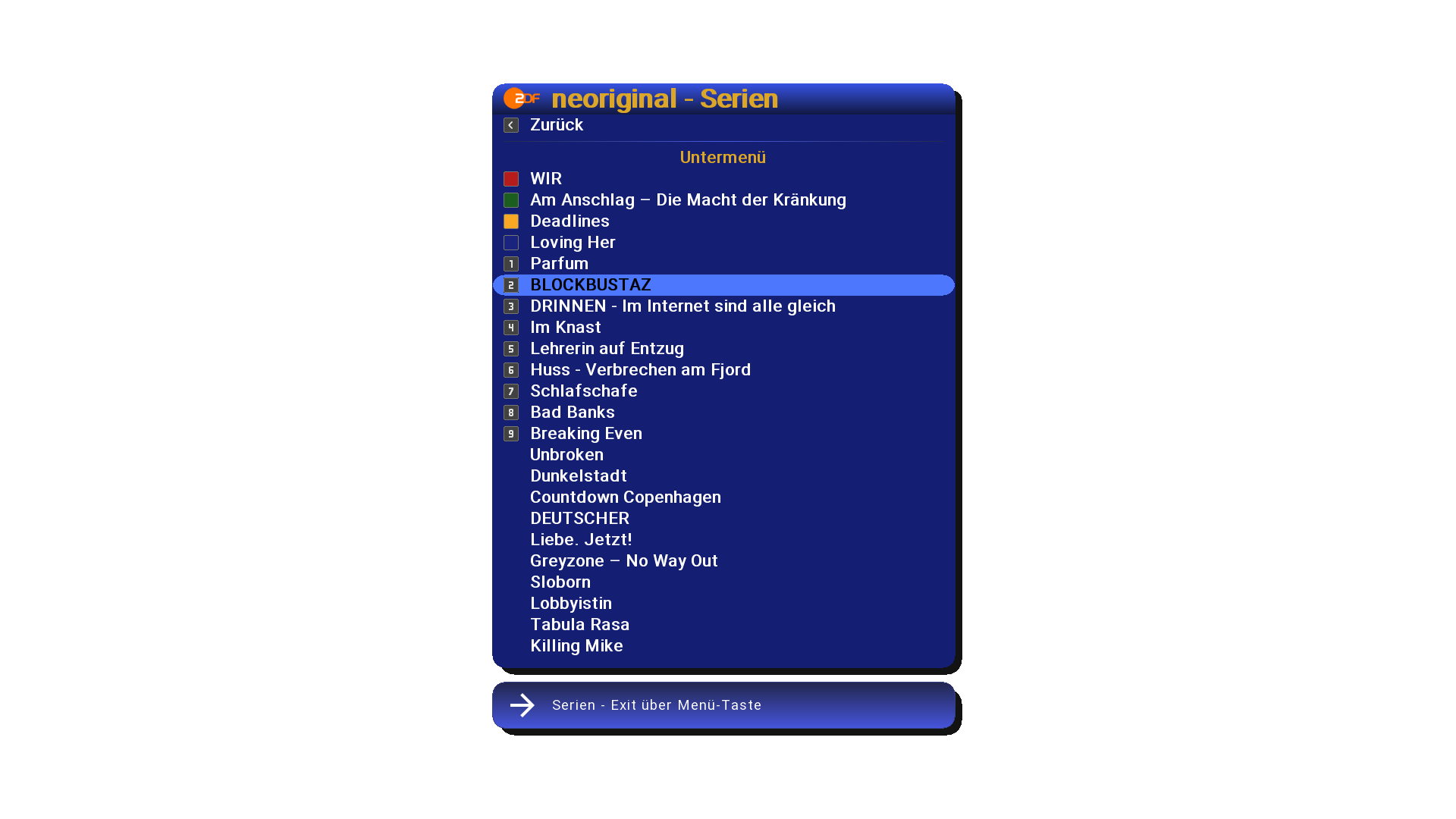 nach auswahl des menüs "neoriginal - Serien" als vhint-hinweis sowas wie "Bitte Exit mit Taste 0" einzublenden.