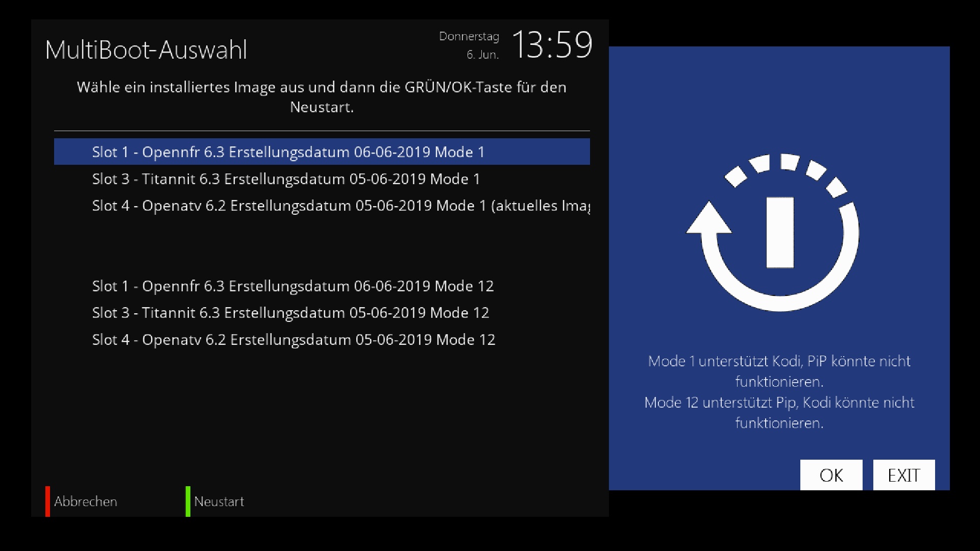 ich bleibe beim alten Bootloader r19 mit NI Image vom April mit Multiboot Auswahl