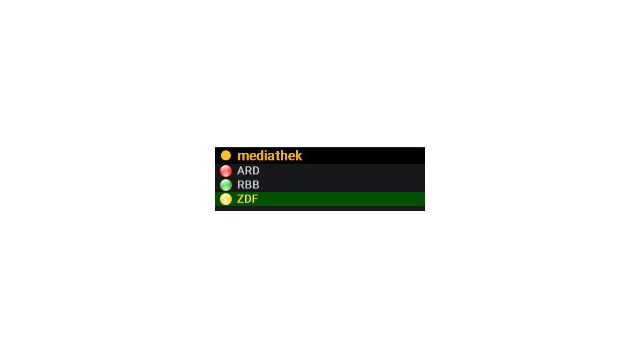{ name = "ARD", exec = "https://mediathekviewweb.de/feed?query=!ARD" , submenu="mediathek", addon="ard"}, { name = "RBB", exec = "https://mediathekviewweb.de/feed?query=!RBB" , submenu="mediathek", addon="ard"}, { name = "ZDF", exec = "https://mediathekviewweb.de/feed?query=!ZDF" , submenu="mediathek", addon="ard"},