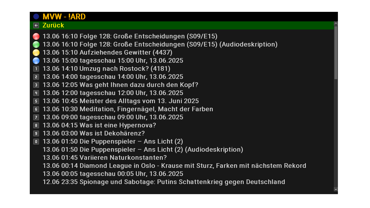Ich nutze für "Dauerangebote" nur noch das Plugin "Media One" wo ich noch dabei bin, zusätzliche Einträge vorzunehmen und das ZDF HbbTV Plugin (Dort fehlen aber größtenteils die ARD Sendungen).