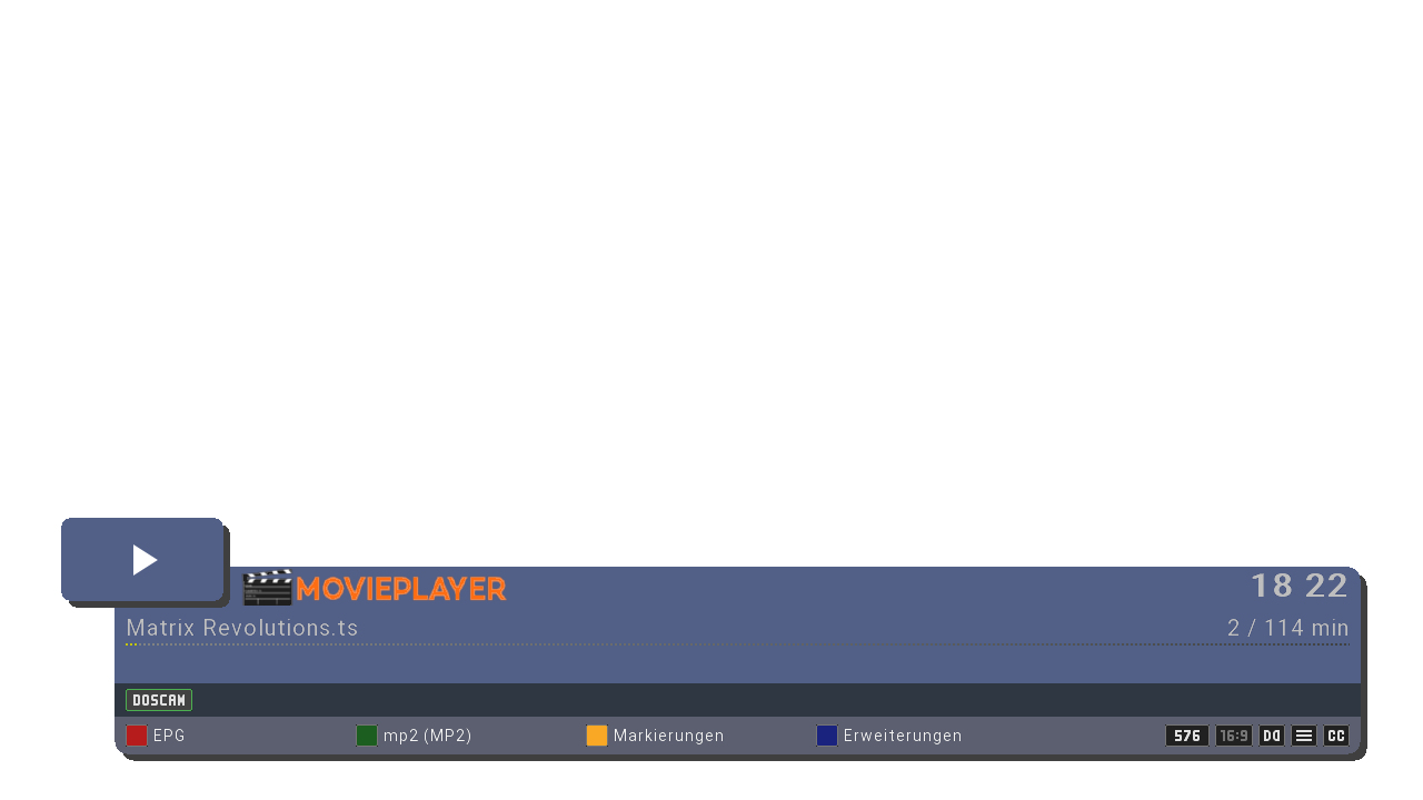 Viel schlimmer finde ich die Anordnung im "Mittelteil". Ich hatte bei der CST/Tuxbox-Version mal angeregt, die Pids (V und A) zu den übrigen PIDs in den unteren Bereich mit kleinerer Schriftgröße zu verlegen. (z.B. wie im oberen Bild des vorherigen Posts) Gerade bei den APIDs gibt es bei der von mir gewählten altersbedingten Schriftgröße für die Kanalliste ziemliches Chaos im Design.