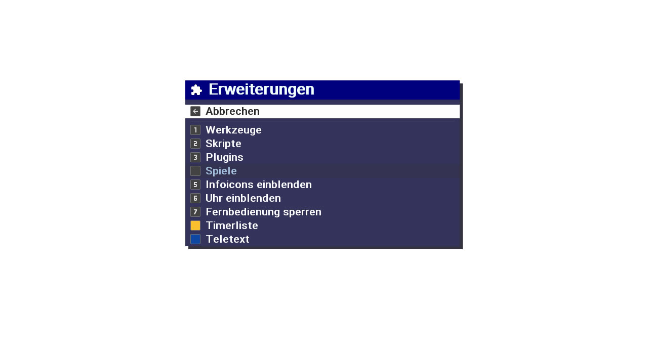 Würdest du ein Plugin nach /var/tuxbox/games kopieren, würde das als Spiel erkannt werden und die 4 wäre sichtbar.