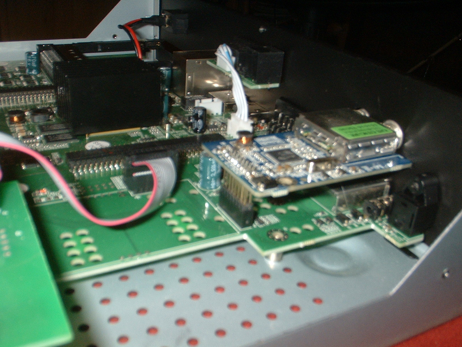 Anzeige bleibt bei CST hängen , kein voller Strom wohl vorhanden , sogar die rote Leuchte beim SPDif-Anschluß fehlt , zwischen dem Metall-Käfig vom Ethernet/USB-Anschluß und dem Bauteil auf dem " Pulse " aufgedruckt ist befindet sich der SMD-Kondensator C-123 , der ist verschmort ...