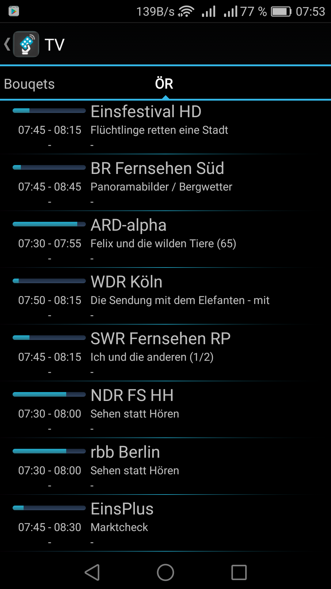 Hier die Bouquets-Features in der App tiMote (gilt übertragen auch für StreamTV):