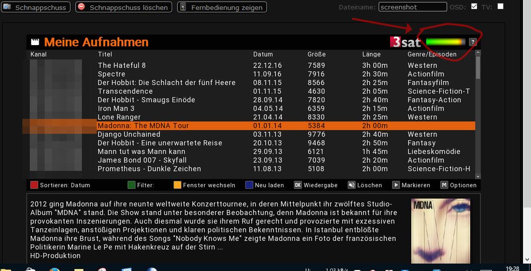 Unter Multimedia-Movieplayer-meine Aufnahmen wird kein Füllstand angezeigt. Bin ich da auf dem Holzweg?