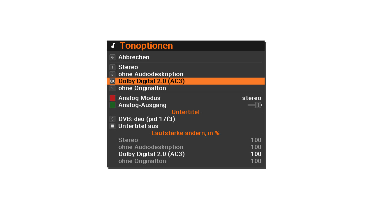 was sagt denn das Menu unter Grün bei laufender Sendung? Steht da Analog-Ausgang auf Ein?