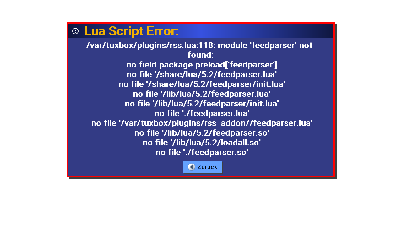 Es erscheint bei nicht oder teils installiertem Lua RSS Reader ein Error Foto 3 ,
