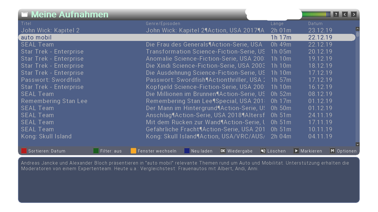 Gespeichert wird das EPG auf externer Netzwerkfreigabe (NFS).