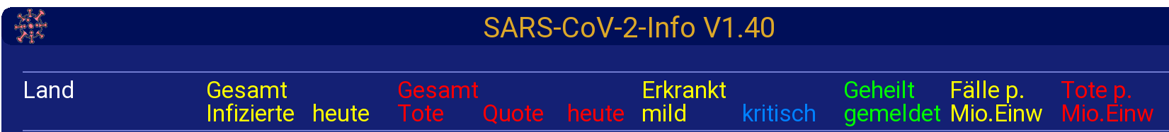 - Länder für die Übersicht können in der Datei corona.land editiert werden.