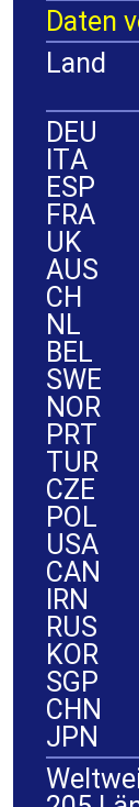 Aktuelle Länder in der Übersicht: Deutschland, Italien, Spanien, USA, Oesterreich, Frankreich, Schweiz, Niederlande, China, UK, ...