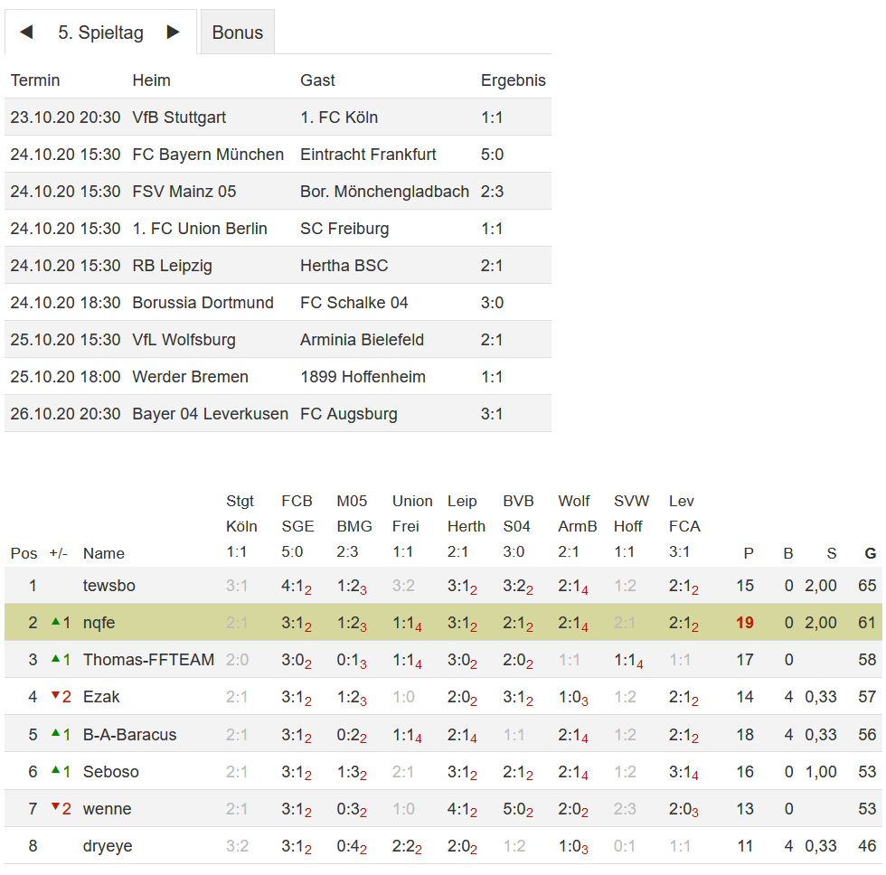 Stand 05. Spieltag - NI-Tippspiel zur Fussball-Bundesligasaison 2020/21
