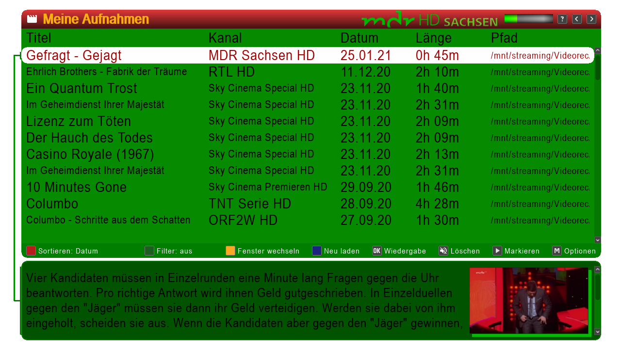 - wie bekomme ich unter Aufnahmen die Schrift größer? hab unter Einstellungen OSD noch nicht das passende gefunden.