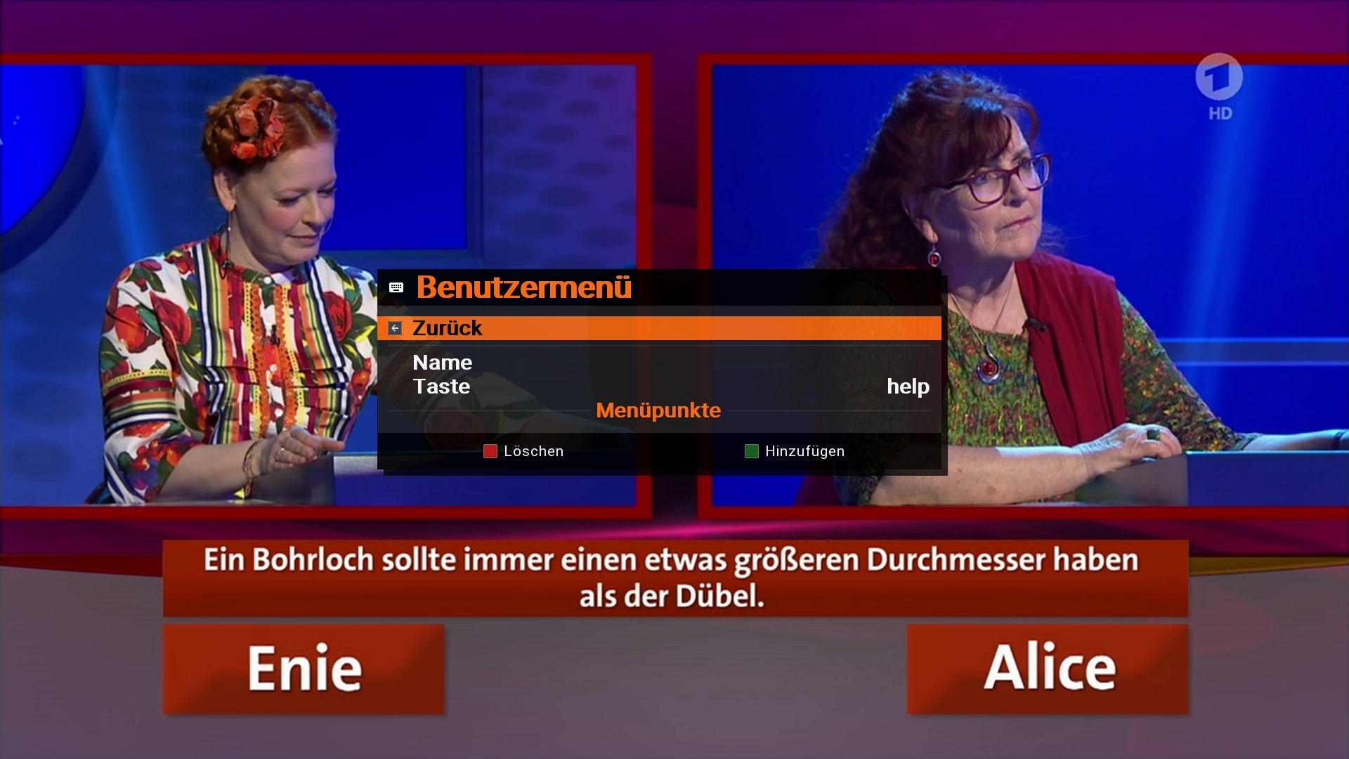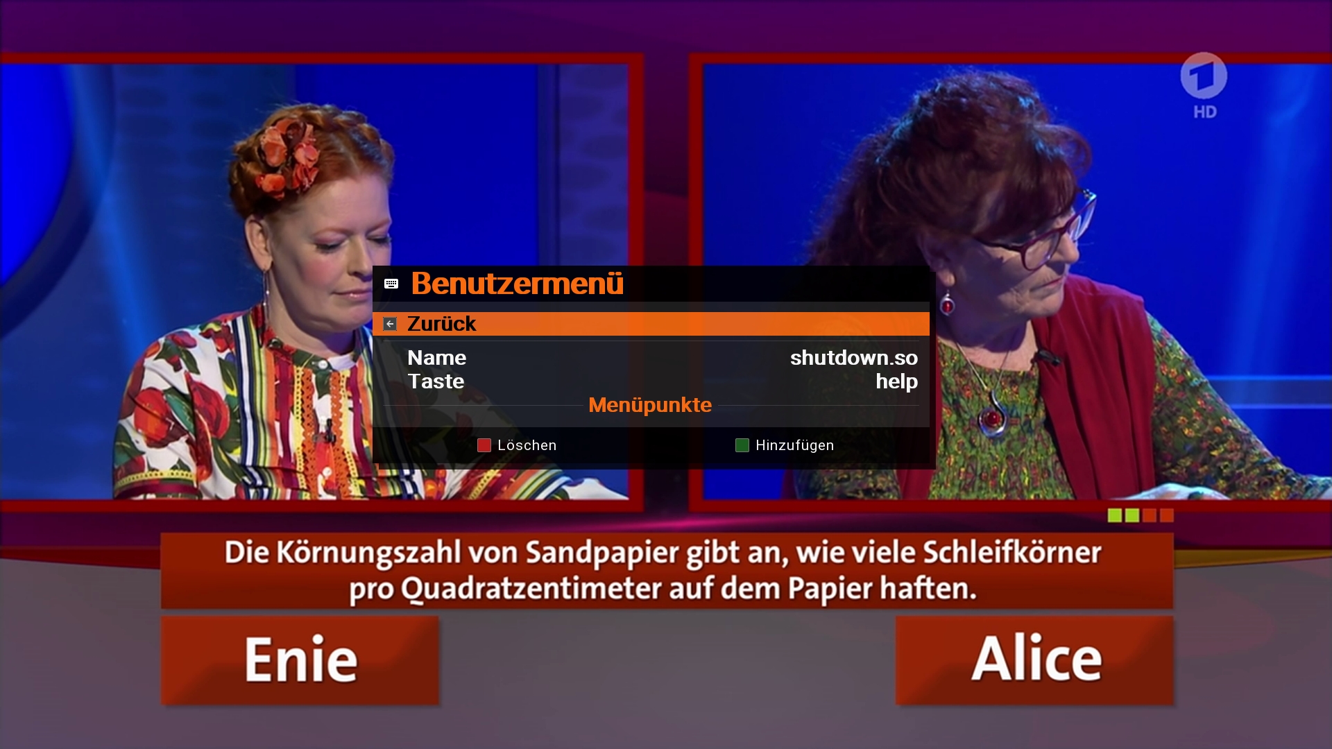 Dann unter "benutzermenü-Menüs anpassen" das Skript einer von mir nicht genutzten Fernbedienungstaste zugeordnet (die help Taste meiner vu+ duo 4k).
