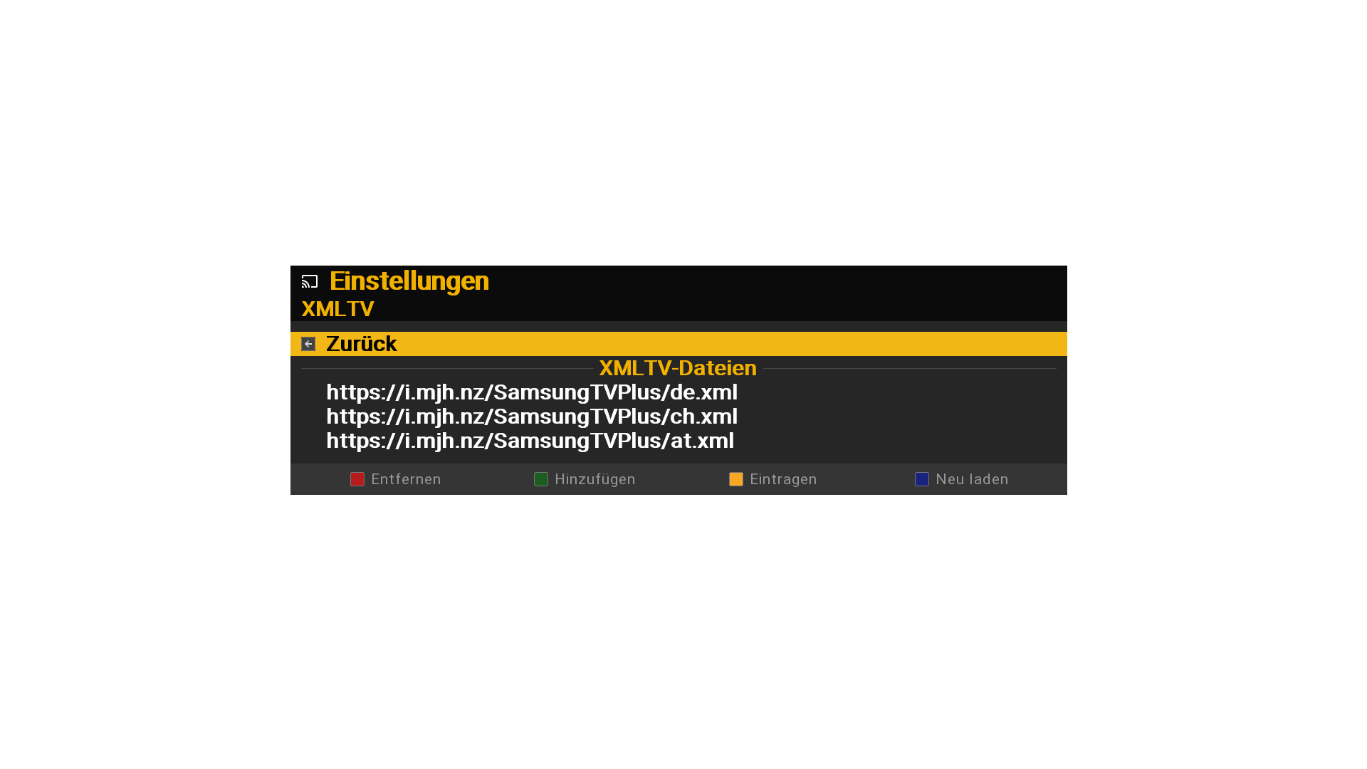 Die Streams ansich laufen soweit, nur mit dem XMLEPG hab ich Probleme: aktuell hab ich bei allen 4 "dt." Streams jeweils nur einen einzigen (aber auch jeweils anderen) Eintrag, welche alle(!) auf den 25.Februar um 21:22 (edit kurz nach 20:00h:) 21.Feb 19:31 datieren !!! Also kein echtes Now+Next. Jemand ne Idee, was das sein könnte?