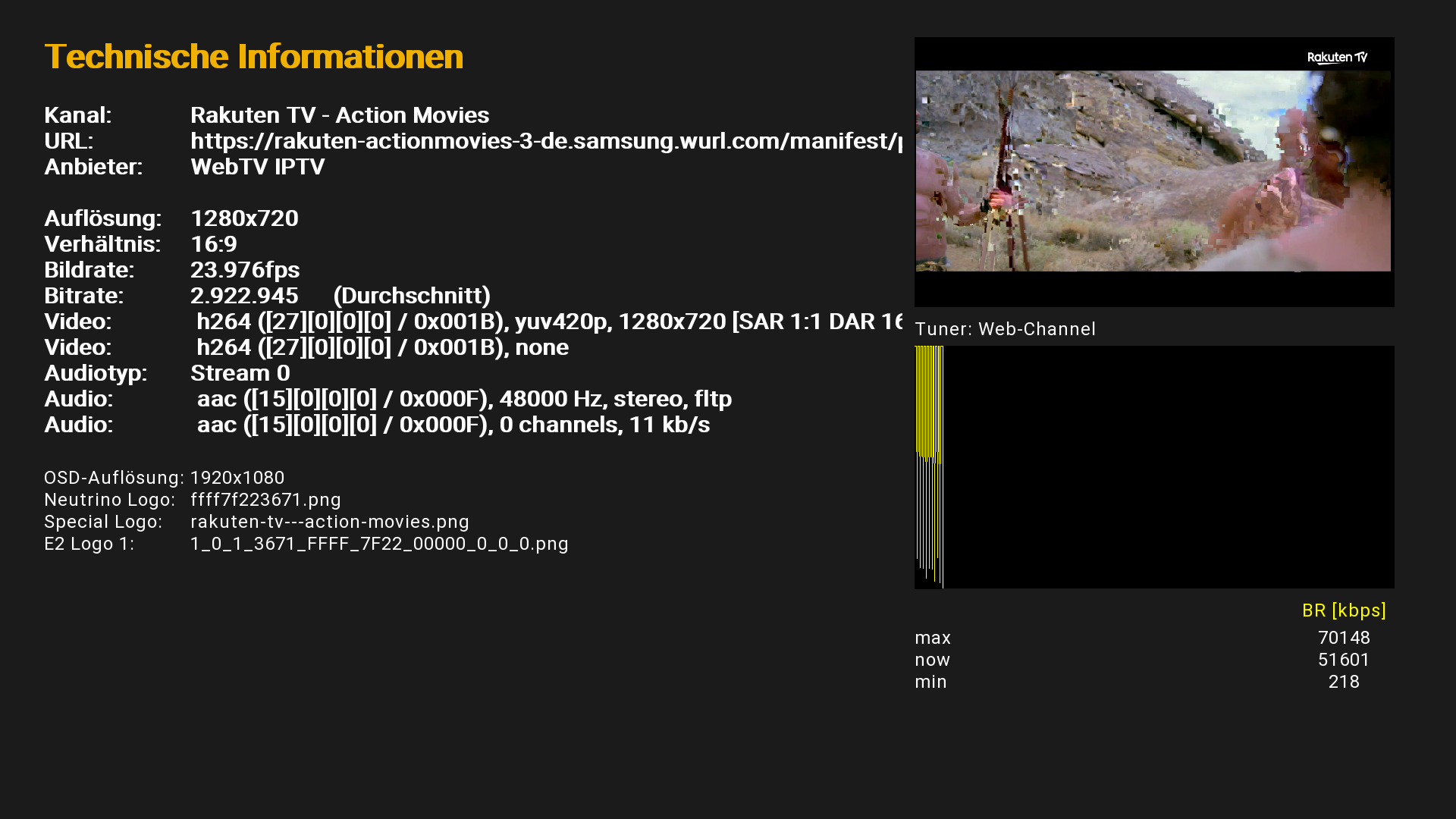 Auf der Neo2 laufen viele Rakuten TV Sender nicht (Kanal zur Zeit nicht verfügbar) nehme ich die Option best bitrate raus laufen sie dort auch (allerdings dann mit der niedrigsten Bitrate.