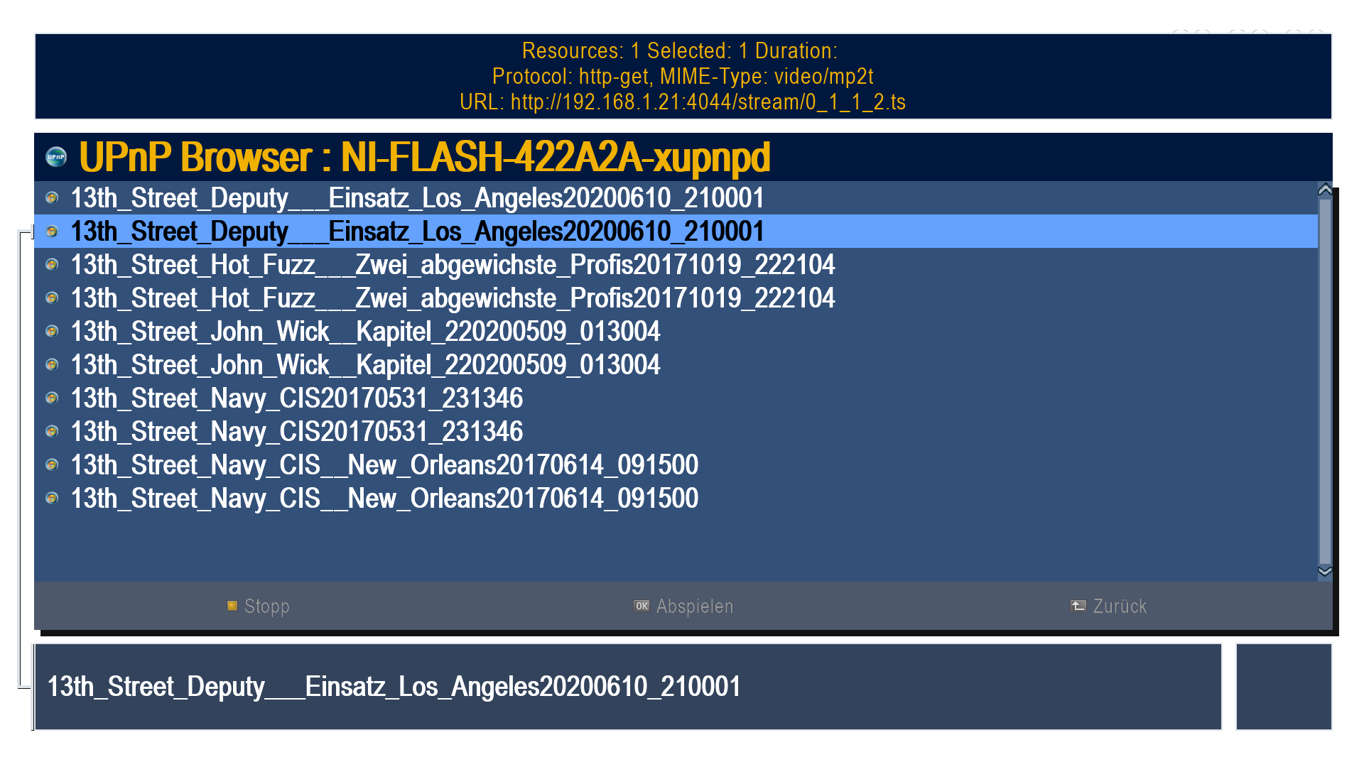 ich nutze meine HD51 , gehe auf den U.Browser und dann auf die Trinity/xupnpd zum Abspielen eines Films -