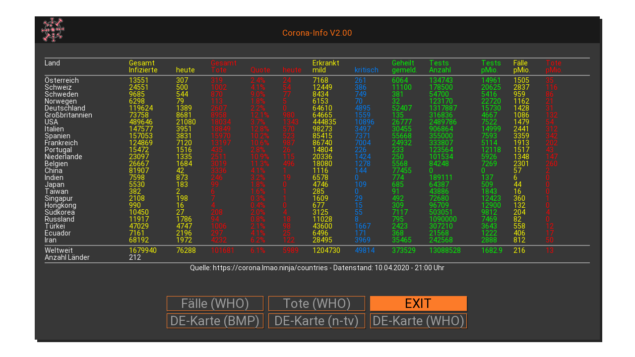 - Thema: [Plugin] Corona-Info V2.43: Übersicht Fallzahlen Länder