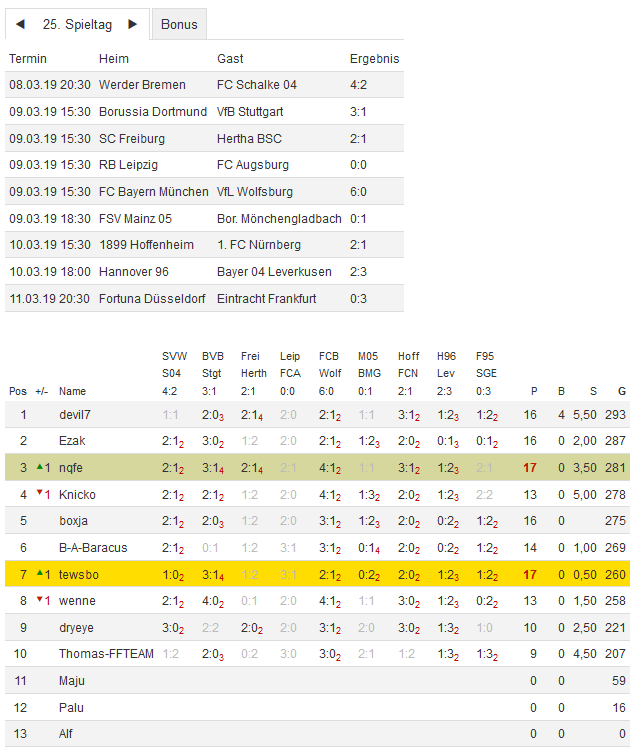 Stand 25. Spieltag - NI-Tippspiel zur Bundesligasaison 2018/19